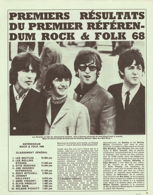 Il y a cinquante ans tout juste dans le n° 15 du mois de février de Rock&Folk, les journalistes restituaient à leurs lecteurs le classement du vote de leurs dix artistes favoris …
